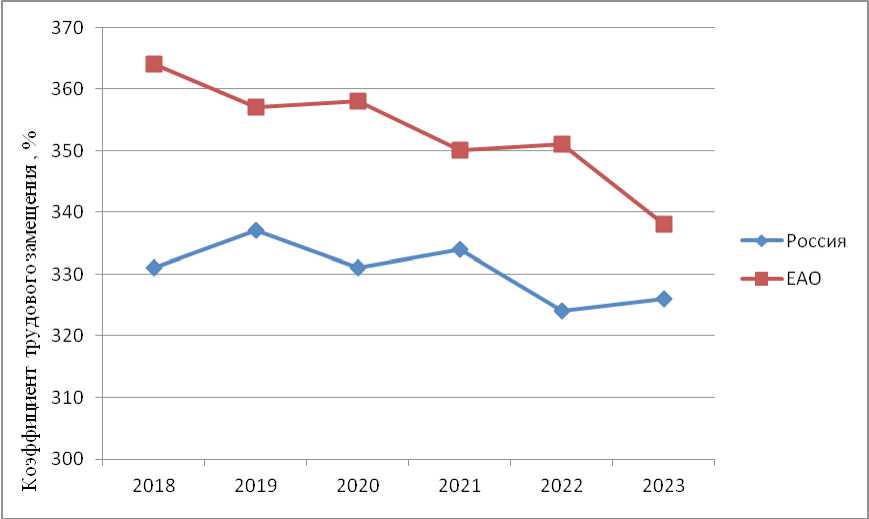 В настоящее время в большинстве регионов Российской Федерации отмечены тенденции значительного снижения численности рабочей силы, старения населения, увеличения преждевременной смертности, что определяет необходимость поиска путей наиболее эффективного использования имеющихся трудовых ресурсов, а также их дальнейшего воспроизводства. В данной работе проведен анализ текущего состояния трудовых ресурсов и занятости в Еврейской автономной области, а также определены основные тенденции их развития. Дана комплексная оценка эффективности использования трудовых ресурсов Еврейской автономной области по таким ключевым показателям, как динамика среднегодовой численности трудовых ресурсов; распределение населения по возрастным группам; динамика коэффициента трудового замещения; динамика численности экономически активного населения, занятых и безработных; динамика среднегодовой численности работников организаций по формам собственности; структура и динамика численности занятых по видам экономической деятельности, уровню образования и половозрастным группам; динамика отдельных показателей напряженности на рынке труда и отдельных индикаторов уровня жизни населения Еврейской автономной области. Проведенное исследование охватывает временные рамки с 2018 по 2023 годы, что позволяет определить основные тенденции формирования и развития трудовых ресурсов в регионе. Также выявлены основные проблемы и диспропорции на рынке труда Еврейской автономной области: сокращение численности рабочей силы за весь исследуемый период; снижение числа занятого населения, в том числе занятой молодежи, при отрицательной миграции; дефицит высококвалифицированных кадров, начиная от квалифицированных рабочих до высшего управленческого персонала, и ряд других. Сделан вывод о том, что без продуманной государственной политики в сфере регулирования рынка труда и создания оптимальных условий для трудоустройства в Еврейской автономной области решить проблему сокращения численности трудовых ресурсов и дефицита кадров в настоящее время практически невозможно. Также необходимо проведение более продуманной демографической политики. Кроме того, важно уделить внимание развитию профессиональных качеств рабочей силы. Это возможно при совершенствовании системы профессионального образования, подготовки, переподготовки и повышения квалификации.