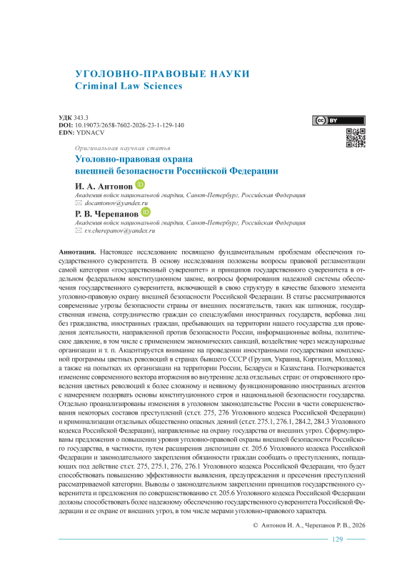 IDR: 143185480 | УДК: 343.3 | DOI: 10.19073/2658-7602-2026-23-1-129-140