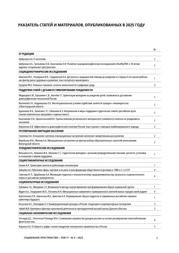 Указатель статей и материалов, опубликованных в 2025 году