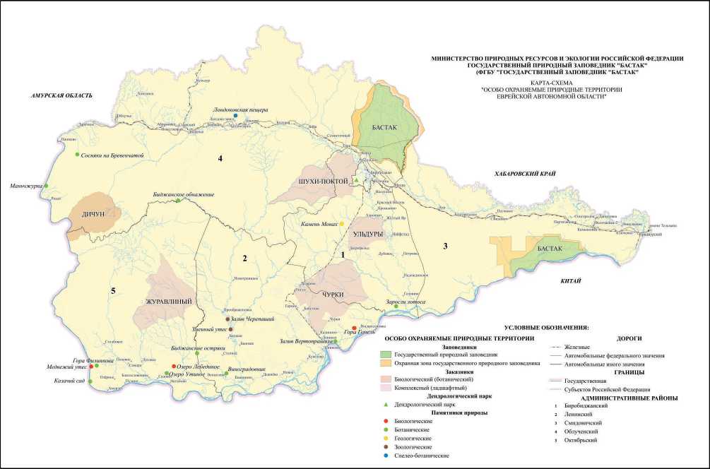 Рис. 1. Заповедник «Бастак» в системе ООПТ Еврейской автономной области