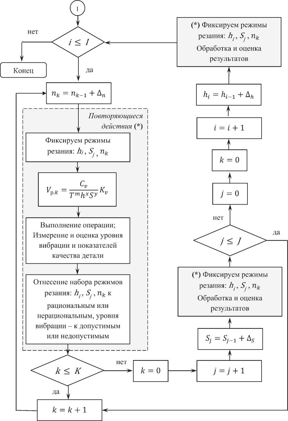 Рисунок 1 – Алгоритм проведения эксперимента по определению рациональных и критических режимов резания