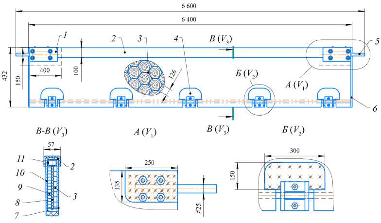 Примечание : А - узел; Б - узел; В - В - сечение.