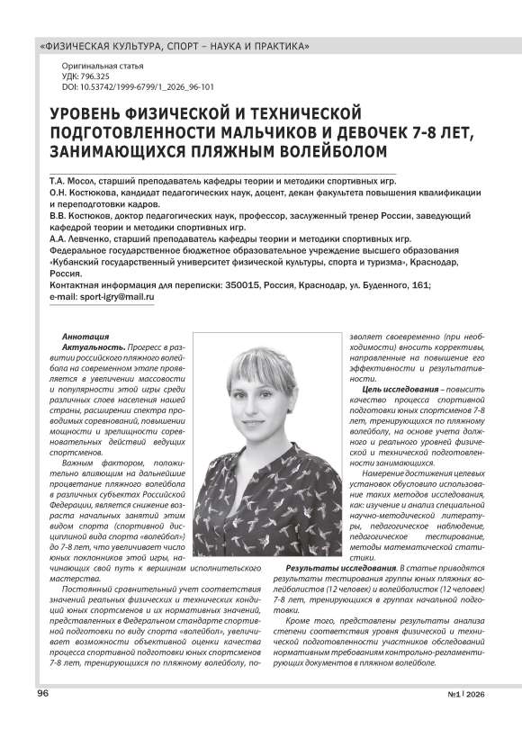 УРОВЕНЬ ФИЗИЧЕСКОЙ И ТЕХНИЧЕСКОЙ ПОДГОТОВЛЕННОСТИ МАЛЬЧИКОВ И ДЕВОЧЕК 7-8 ЛЕТ, ЗАНИМАЮЩИХСЯ ПЛЯЖНЫМ ВОЛЕЙБОЛОМ