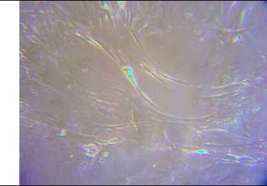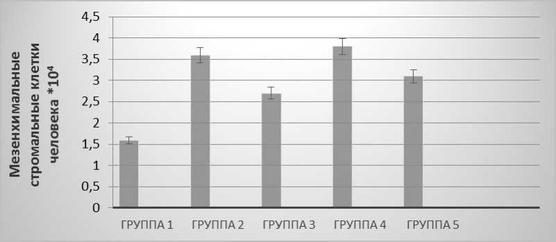 При анализе морфофизиологических особенностей культивируемых мезенхимальных стволовых клеток человека из пупочного канатика было выявлено, что стволовые клетки человека, используемые в работе, относились к первичной выделенной культуре 4-го пассажа.