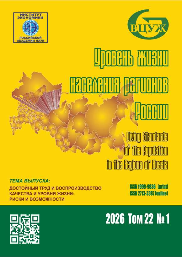 Содержание выпуска 1 т.22, 2026 Уровень жизни населения регионов России