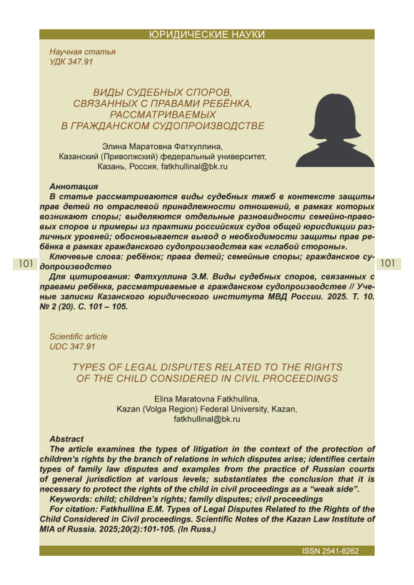 Текст научной статьи Виды судебных споров, связанных с правами ребёнка, рассматриваемые в гражданском судопроизводстве