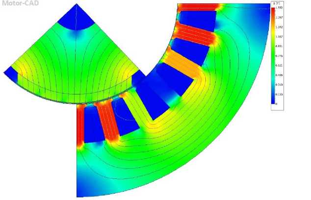 Рис. 4. Распределение магнитной индукции в модели с 36 пазами Fig. 4. Magnetic flux distribution in the 36-slot model