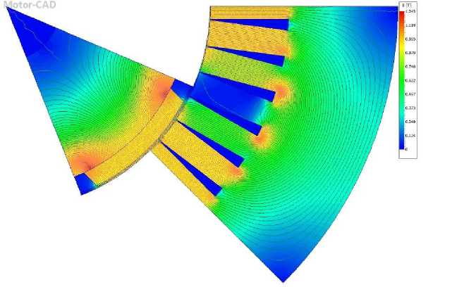 Рис. 2. Распределение магнитной индукции в модели с 24 пазами Fig. 2. Magnetic flux distribution in the 24-slot model