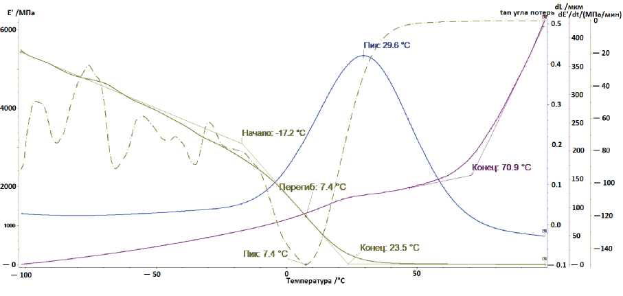 Рис. 2. Термограмма ДМА для ПВХ, пластифицированного ДФЭГ