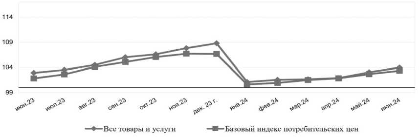 Рисунок 1. Индекс потребительских цен за 2023-2024 годы в Севастополе