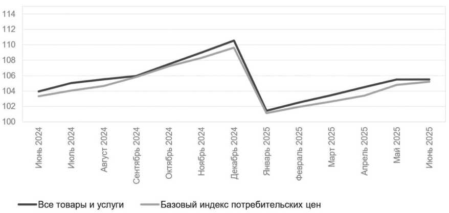 В июне 2025 года индекс находился на уровне 104 %. Индекс товаров и услуг перестал расти, что свидетельствует о положительной динамике, но общая тенденция оставляет желать более стабильной ситуации на рынке.