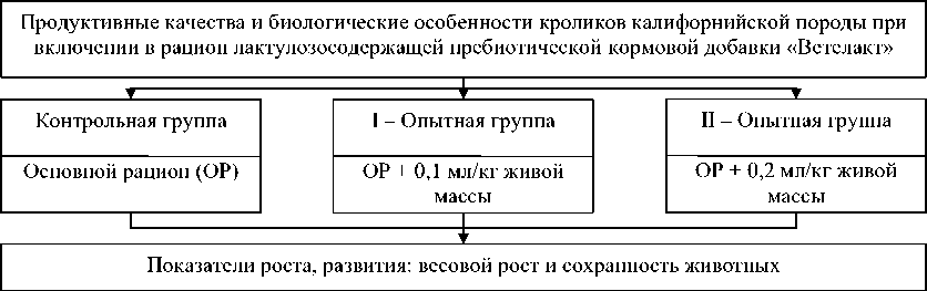 По мнению большинства ученых, в ближайшие годы в животноводстве планируется увеличение сегмента производимой органической продукции, поэтому все более актуальными и перспективными становятся исследования по повышению уровня продуктивности и естественной резистентности животных с использованием при выращивании кроликов пребиотичес-ких кормовых средств в качестве альтернативы использования антибиотиков [15–17].