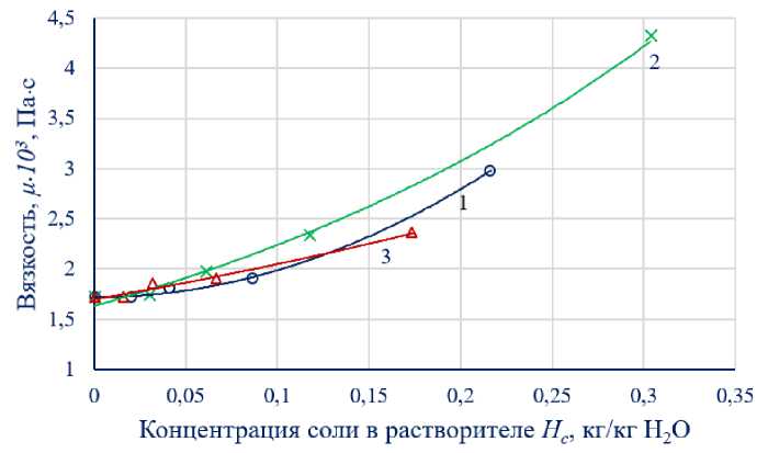 Экспериментальные данные по вязкости μ насыщенных растворов были аппроксимированы с помощью уравнения:
