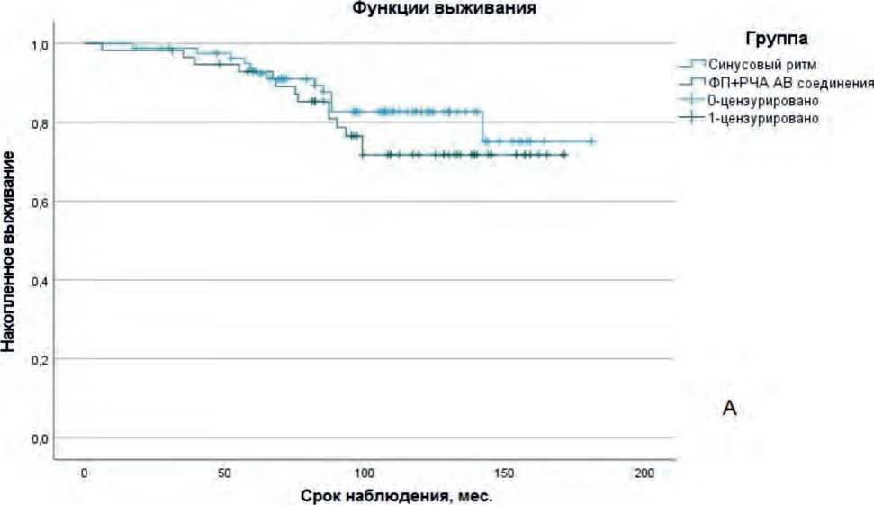 По данным метаанализа U. Mustafa и соавт. [8], включавшему 83 571 пациента, было обнаружено, что у пациентов с ФП был более высокий риск отсутствия клинического ответа и смертности от любых причин после имплантации СРТ по сравнению с пациентами с синусовым ритмом. Кроме того, у пациентов с СН и ФП не было обнаружено значительного снижения показателей смертности или госпитализации по поводу СН после СРТ по сравнению с имплантируемым кардиовертером-дефибриллятором или медикаментозной терапией. Важно отметить, что в подгруппе пациентов с ФП, которым была выполнена РЧА АВ-узла, смертность была значительно ниже, она была эквивалентна таковой у пациентов с синусовым ритмом. При этом влияние постоянной, персистирующей или пароксизмальной ФП на ответ СРТ не изучался.