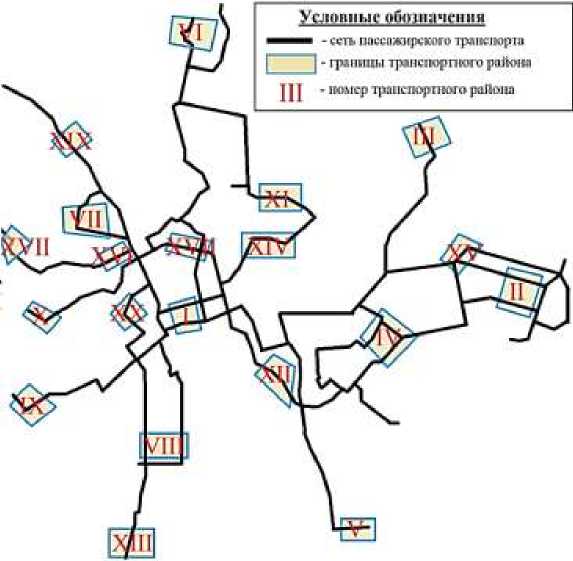 Для оценки времени перемещения по городу Нижний Тагил, были выделены 20 отдельных транспортных районов (рисунок 1).