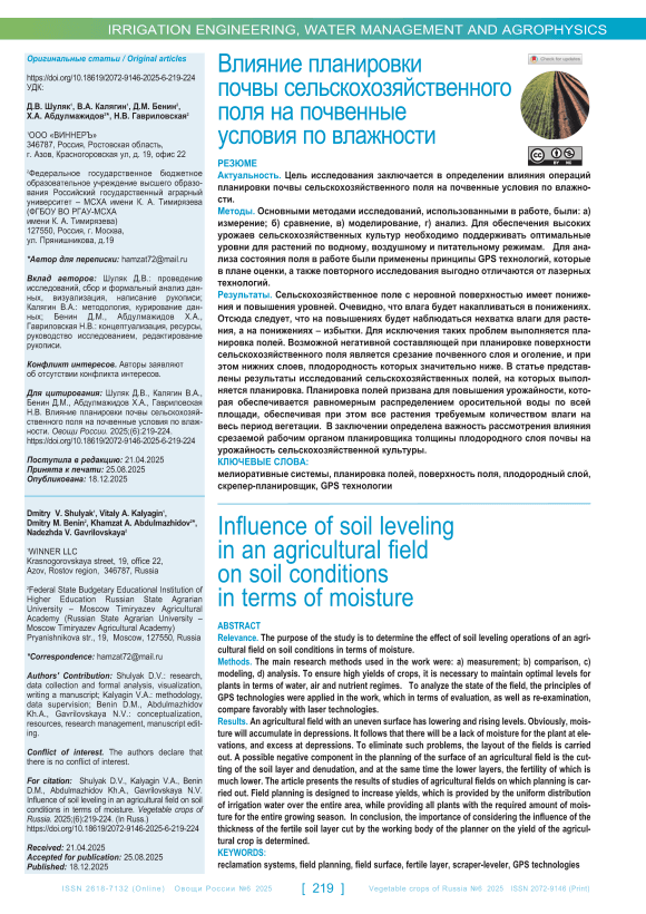 Рубрика: Мелиорация, водное хозяйство и агрофизика
