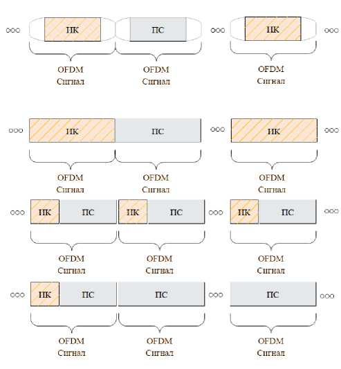 сунок 1 иллюстрирует различные модификации предложенных структур вставки испытательных комбинаций, где ИК – испытательная комбинация, ПС – полезный сигнал.