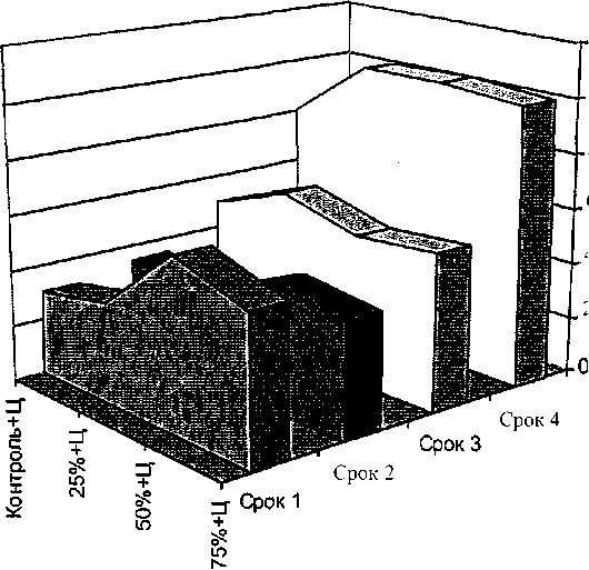 Рассматривая этот опыт в целом, можно заключить, что вносимый в состав почвогрунтов цеолит, обладая высокими сорбционными свойствами, снижает концентрацию азота и элементов питания в почвогрунте, и, тем самым ухудшает питательный режим растений.