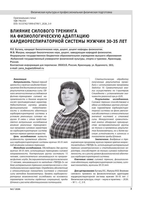 ВЛИЯНИЕ СИЛОВОГО ТРЕНИНГА НА ФИЗИОЛОГИЧЕСКУЮ АДАПТАЦИЮ КАРДИОРЕСПИРАТОРНОЙ СИСТЕМЫ МУЖЧИН 30-35 ЛЕТ