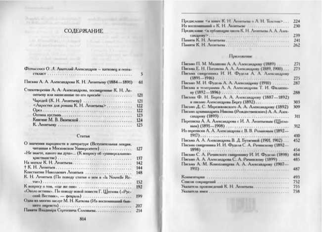 Книга включает в себя четыре основных раздела. Первый из них — письма Александрова Константину Леонтьеву 1884–1891 гг.15; уцелевшие письма Леонтьева Александрову уже опубликованы в Полном собрании сочинений и потому не дублируются. Ранние письма производят впечатление по-юношески наивных и подчас заставляют улыбнуться (как письмо от 23 августа 1885 г.); однако с лета 1887 г. и до конца жизни К. Н. Леонтьева Александров в своих письмах заметно меняется и предстает как серьезный и ответственный мыслитель и в то же время деловой человек, постоянно исполняющий бытовые и литературные поручения своего наставника. Немалый интерес представляют письма Александрова о его трудоустройстве приват-доцентом в Московском университете, о реакции научного сообщества на его первые пробные лекции. Комментарий включает перечень утраченных писем с обеих сторон16.