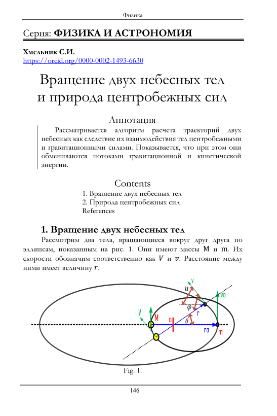 Рассматривается алгоритм расчета траекторий двух небесных как следствие их взаимодействия тел центробежными и гравитационными силами. Показывается, что при этом они обмениваются потоками гравитационной и кинетической энергии.