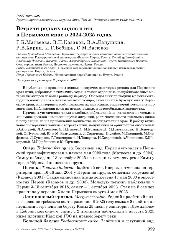 Текст статьи Встречи редких видов птиц в Пермском крае в 2024-2025 годах