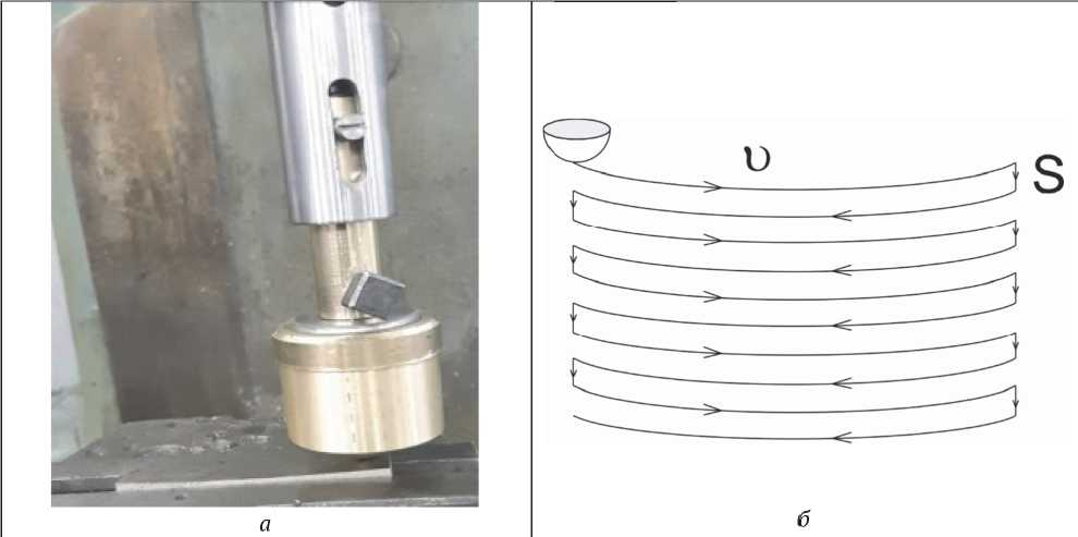 Рис. 4. Процесс выглаживания (а) и схема движения инструмента (б)