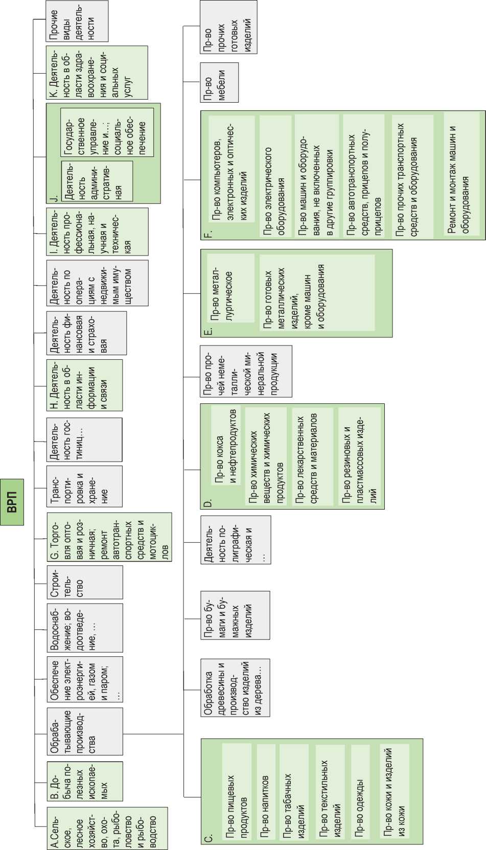 В настоящей работе авторы добавили для рассмотрения структуру обрабатывающих производств. Это важно, поскольку новый технологический уклад (Глазьев, 2012) характеризуется как раз подразделами в классификации обрабатывающих производств (Гармашова, 2019, с. 63).