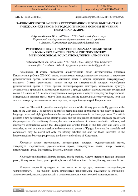 IDR: 14135241 | УДК: 821 (575.2) (043.3) | DOI: 10.33619/2414-2948/125/76