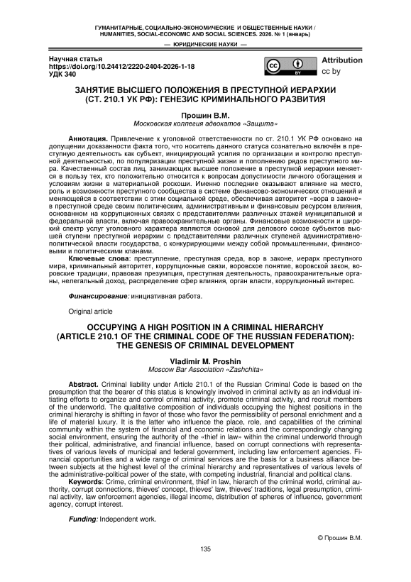 Текст научной статьи Занятие высшего положения в преступной иерархии (ст. 210.1 УК РФ): генезис криминального развития