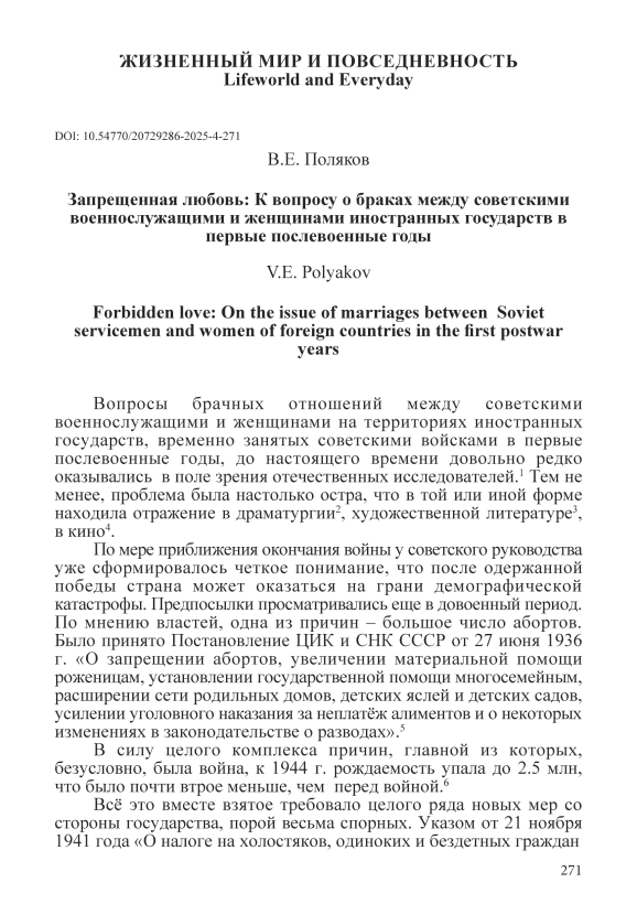 Текст научной статьи Запрещенная любовь. К вопросу о браках между советскими военнослужащими и женщинами иностранных государств в первые послевоенные годы
