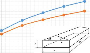 Рисунок 2 – Изменение оптимальной ширины зерносклада в зависимости от площади застройки и наклона ската кровли (наклон ската кровли α =12о и α = 30о)