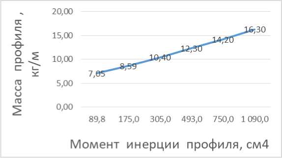 Рисунок 3 – Зависимость веса швеллера от момента инерции