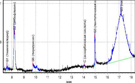Суда еритін В тобы дәрумендерінің сандық мөлшері «Капель 105М» аспабындағы капиллярлық электрофорез әдісімен анықталды. В1, В2, В3, В5 (никотин қышқылы), В6 дәрумендерінің құрамын анықтау үшін капиллярлық-зоналық электрофорез әдісі (λ=200– 267 нм; pH=8,9; Leff/Lcomm=65/75 см; капилляр диаметрі=50 мкм; кернеу: +25 кВ, температура: +30 °C) толқын ұзындықтарын бағдарламалық ауыстыру арқылы қолданылды.
