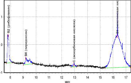 Журызшген зерттеулердш, нэтижелер1 жүгері шашағы сығындысының қышқыл сүт өнімдерін өндіруде В тобы дәрумендерінің цосымша кез1 бола алатынын керсетедг ЖYгерi шашаFынын сулы-спиртйк сыгындысы цосылган «Айран» сүт қышқылды өнімінің прототипін әзірлеу барысында оның құрамында пиридоксин, рибофлавин жэне никотин цышцылыны, бар екендт аныцталды (1-сурет).