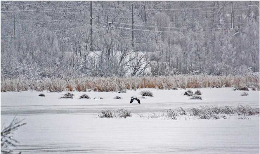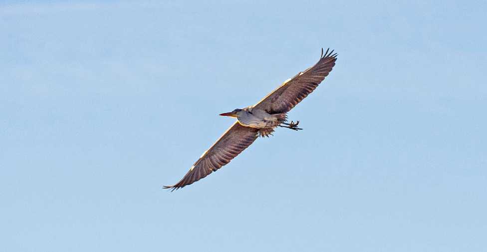 Рис. 3. Серая цапля Ardea cinerea в полёте у восточного берега Дудергофского озера. 13.01.2025. Фото автора