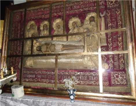 Среди разнообразных тканей, которые формировали храмовое убранство и использовались в богослужении, особое место занимает плащаница, иконография которой имеет глубокий богословский смысл. «Плащаница (погребальные пе- лены) – в православном богослужении ткань с выполненным шитьем или красками изображением погребения Господа Иисуса Христа в среднике и орнаментальной композицией на кайме и текстом песнопения» [3, с. 699].
